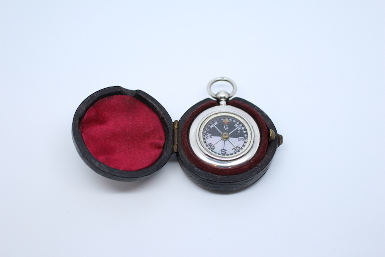 Code BA1503291: Solid Silver Leather-Cased Compass by F. Barker & Son, Hallmarked London 1909