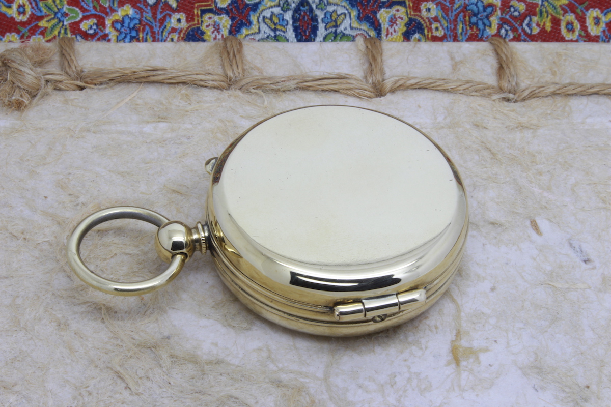 | This is nice English military compass that was made around 1900 and was retailed by Dame Stoddard & Kendall. It comes in a sturdy brass case still in excellent condition for its age. It is a snap cover case that comes without a spring. Inside the lid it is engraved with inscription: ENGLISH MILITARY COMPASS. The mother-of-pearl dial is a real beauty and glow in low light condition. It is a variation of the Singer's Patent dial and is signed DAME STODDARD & KENDALL, BOSTON. The dial is automatically locked when the lid is closed, which prevents damage to the jewelled bearing when the compass is not use. It is automatically released when the lid is open. The dial is covered with a thick glass crystal in excellent condition without chips or scratches. The compass is fully working and finds North without any problem. It measures around 52 mm in diameter excluding the pendant and bow. |
